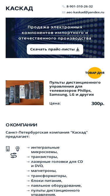 продажа электронных компонентов импортного и отечественного производства: интегральные микросхемы, транзисторы, лазерные головки для cd и dvd, магнетроны, трансформаторы, блоки питания, паяльное оборудование, пульты дистанционного управления, провода, кабели, разъемы, светодиодные ленты и энергосберегающие лампы на основе led технологии; монтаж светодиодных лент; разработка и проектирование световых эффектов на основе мощных светодиодов и разноцветных лент