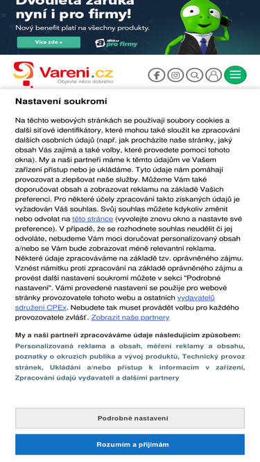 87%Nové recepty - ☑️Holandský řízek s houbami a tymiánem, ☑️Lívance z ovesných vooček, ☑️Koláč, co dům dal, ☑️Piškotová bublanina s meruňkami, ☑️Citronový koláč podle Zdeňka Pohlreicha, ☑️Jak připravit hovězí carpaccio? nebo některý z dalších top receptů ve vaší nejlepší online kuchařce