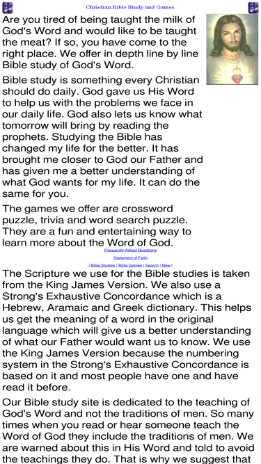 90%one-stop destination for those who want to learn more about jesus christ, christian teachings, the bible or trivia. also offers games and study helps.