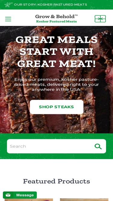 100%grow & behold brings you glatt kosher meats raised on pasture on family farms with no hormones or antibiotics. we deliver anywhere in the usa. we look forward to feeding you soon!