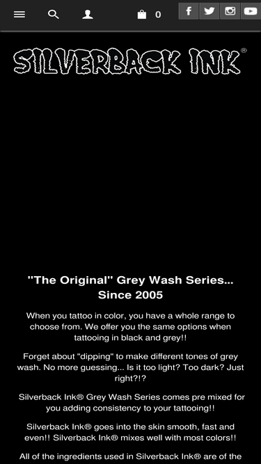 98%"the original" grey wash series... since 2005 when you tattoo in color, you have a whole range to choose from. we offer you the same options when tattooing in black and grey!! forget about "dipping" to make different tones of grey wash. no more guessing... is it too light? too dark? just right?!? silverback ink® grey wash series comes pre mixed for you adding consistency to your tattooing!! silverback ink® goes into the skin smooth, fast and even!! silverback ink® mixes well with most colors!! all of th