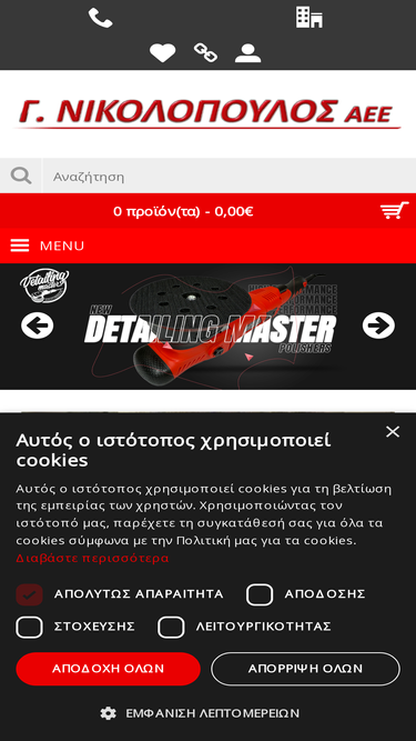90%Γ Νικολόπουλος ΑΕΕ, Εμπόριο Καθαριστικών αυτοκινήτου, Χημικά αυτοκινήτου, Αρωματικά, Εξοπλισμός πλυντηρίου αυτοκινήτων, Σκούπες, Αφροποιητές, Tornador, Αλοιφαδόροι, Σφουγγάρια, Πετσέτες, Αλοιφές γυαλίσματος, Προϊόντα Detailing, Καθαριστικά μοτοσυκλέτας, Καθαριστικά Σκαφών, Υαλοκαθαριστήρες...