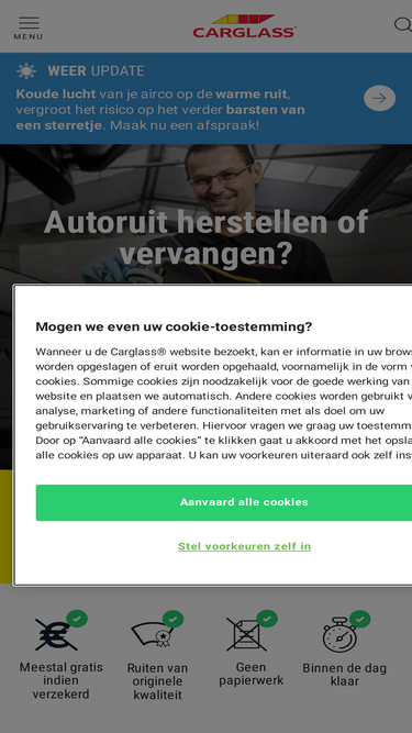 91%autoruiten herstellen en vervangen, dat is de expertise van carglass®! ✓24/7 service ✓levenslange garantie ✓ maak een afspraak online