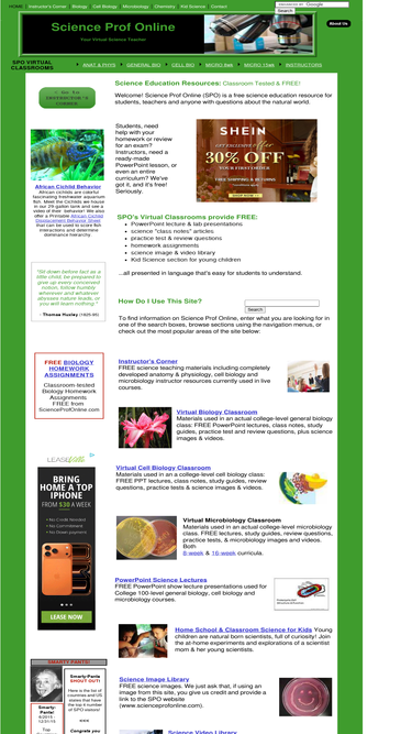 98%science prof online: free education resource for students & teachers: virtual classes, powerpoint lectures, test questions, science photos & videos.