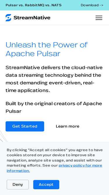 90%Meet StreamNative—the team behind Apache Pulsar and the Kafka‑compatible Ursa Engine. Learn how our leaderless, lakehouse‑native streaming platform powers real‑time data and Agentic AI worldwide.