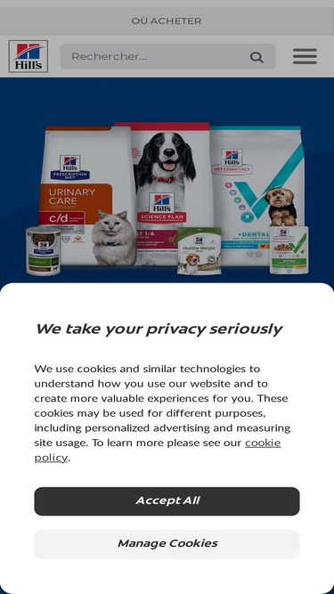 88%Découvrez nos croquettes et pâtées Hill’s Vet Essentials pour chien et chat, spécialement formulées pour contribuer de manière proactive à la santé de votre animal.