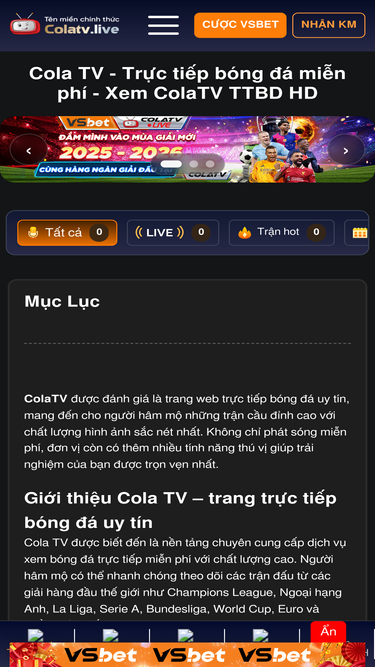 100%Colatv là kênh xem bóng đá trực tuyến tốc độ cao full HD, colatv phát trực tiếp bóng đá Việt Nam, Euro, ngoại hạng Anh, xem trực tiếp bóng đá có bình luận.