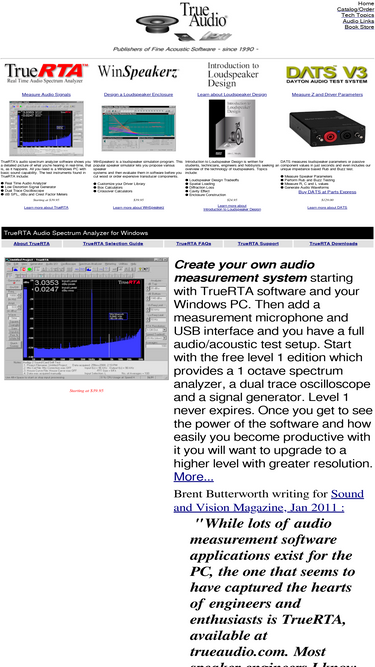 75%audio spectrum analyzer software and loudspeaker design software. purchase truerta, winspeakerz and introduction to loudspeaker design.