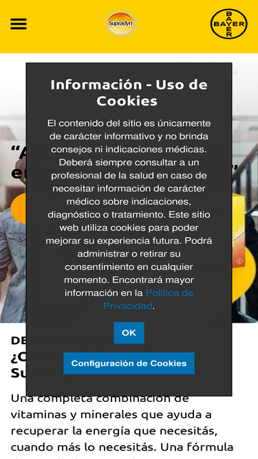 81%Mantenete Positivo con la ayuda de Supradyn Performance. Su complejo de 8 vitaminas y 2 Minerales te ayuda a ser vos en tu mejor versión para enfrentar los desafíos de todos los días.¡Tomar tu Supradyn Performance no puede ser más simple! Dejá caer el comprimido efervescente dentro de un vaso con agua y esperá hasta que se disuelva. Si tenés un día largo por delante o querés enfrentar nuevos desafíos Supradyn Peformance te ayuda a mantenerte positivo.Suplemento Dietario dietético a base de Vitaminas y Magnesio, sabor naranja, en comprimidos efervescentes.