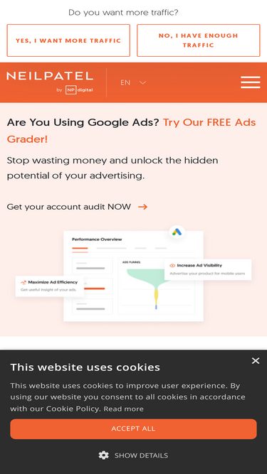 Visualizza metriche del sito web, keyword, i principali canali di marketing, strumenti di ricerca di mercato e altro ancora.