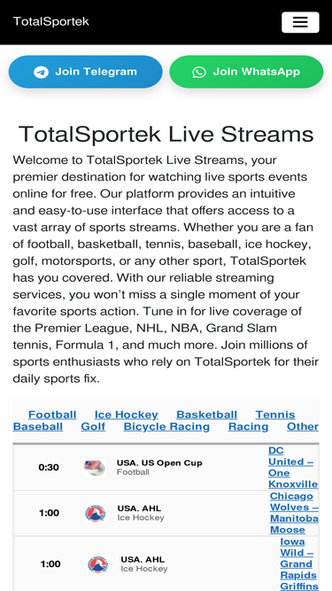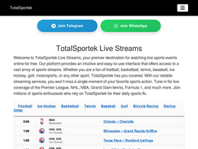 89%Watch live sports streams for free on TotalSportek: Football, basketball, tennis, baseball, hockey, NFL, golf, racing, and more. Stay updated with all the sports action!