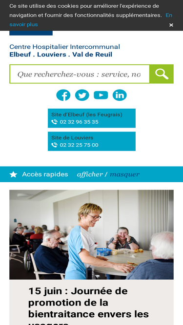 65%Site du Centre Hospitalier Intercommunal Elbeuf - Louviers - Val de Reuil. Informations sur les consultations, plan d'accès, numéros d'urgence....