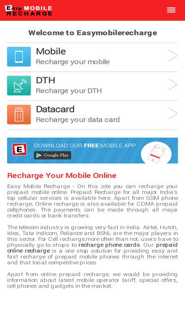88%online mobile recharge - easy recharge your airtel, aircel, vodafone, idea, reliance, bsnl, virgin mobile, loop mobile and tata indicom mobile phone online in india using credit card.