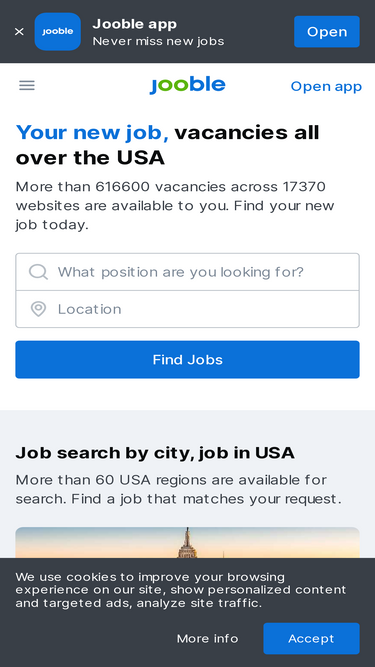95%Explore all the current vacancies from all the top employers and the leading job boards in USA and abroad. 385.000+ new current vacancies. Competitive salary. Full-time, temporary, and part-time jobs. Job email alerts. Free, fast and easy way find a job.