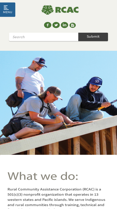 100%Founded in 1978, Rural Community Assistance Corporation (RCAC) is a 501(c)(3) nonprofit organization. Our work includes environmental infrastructure (water, wastewater and solid waste facilities); affordable housing development; economic and leadership development; and community development finance. Who we serve Headquartered in West Sacramento, California, RCAC’s employees serve rural and Indigenous communities in Alaska,