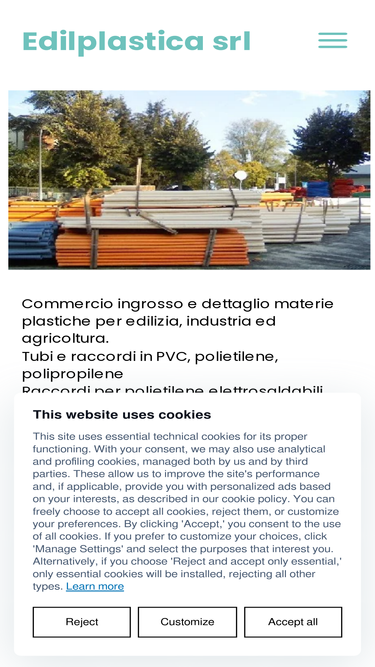 87%Edilplastica srl. Piacenza. Commercio ingrosso e dettaglio materie plastiche per edilizia, industria ed agricoltura. Tubi raccordi PVC polietilene polipropilene pozzetti depurazione acque reflue policarbonato alveolare metacrilato profilati vaschette artigianali vetroresina foglia polietilene irrigazione progettazione installazione impianti automatizzati. - home