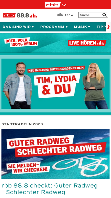 62%Jetzt können Sie unserem "Guten Morgen Berlin"-Team beim Arbeiten über die Schulter gucken. Immer Montag bis Freitag, 6 bis 8 Uhr begleiten wir Sie nicht mehr nur im Radio, sondern auch im rbb-Fernsehen Berlin.
