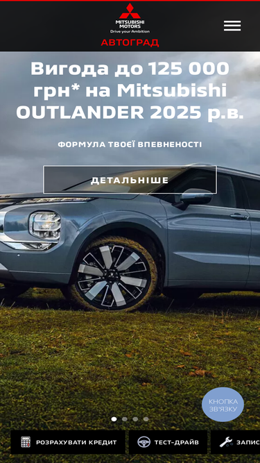 61%Outlander 2025 в Автоград (Київ): комплектації Business/Intense/Ultimate та ціна від 1 389 000 грн. Прайс-лист, тест-драйв і розрахунок кредиту онлайн.