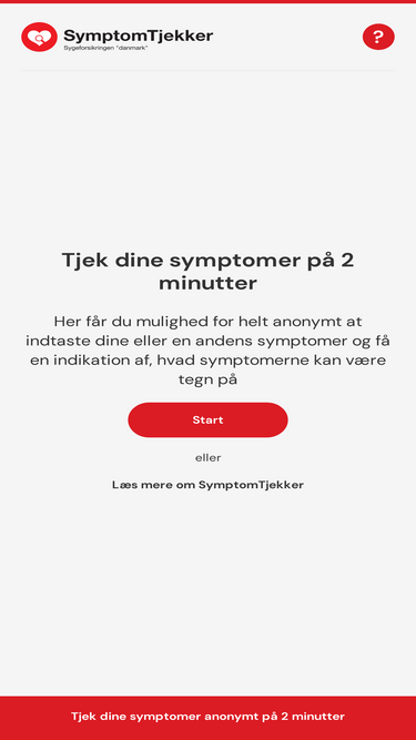 81%symptomtjekker.dk er Danmarks første avancerede symptomtjekker, den er udviklet af læger og understøttet af kunstig intelligens.