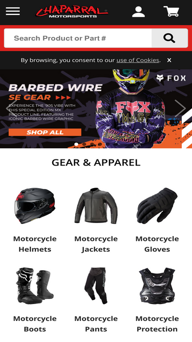 83%chaparral motorsports (chap moto) sets the standard for sales of powersports and motorcycle gear, parts and accessories. free shipping over $75. competitive pricing. hassle free returns. rewards program. expert customer service.