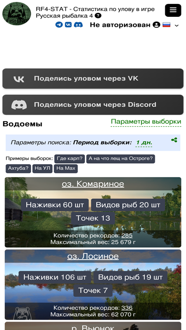 92%catch statistics for reservoirs in the game russian fishing 4.