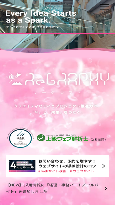 91%以下のフォームから送信いただきますと、リーグラフィのウェブサイト制作プロセスの資料(PDF)を無料でダウンロードできます。 氏名必須 メールアドレス必須 携帯電話のメールアドレスは、返信メールが届かない...