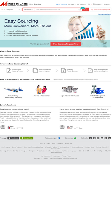 71%simplify your sourcing process with easy sourcing service. made-in-china.com helps buyers match their buying requests from all categories with the right & qualified suppliers. get to know the easy sourcing service better and start to post your buying requirements.