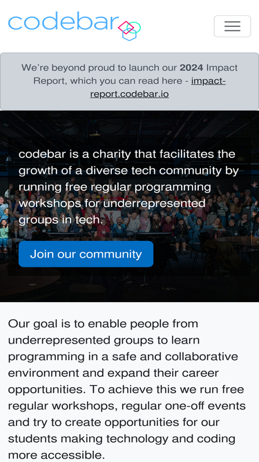 80%Making tech more diverse and welcoming by bringing people together and helping teach programming skills.