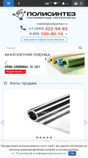 66%Компания ПОЛИСИНТЕЗ – надежный поставщик полиэтиленовой пленки по выгодным ценам. Широкий ассортимент, доставка по всей России. Работаем с оптом и розницей.