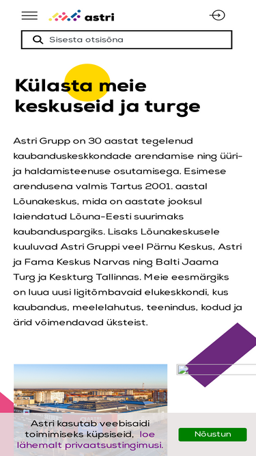 87%Astri Grupp on Eesti suurim elu- ja kaubanduskeskkondade arendaja. 27M+ külastust aastas ja 1000+ kauplust.