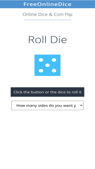 72%free online dice allows you to flip a coin or roll virtual dice. you can flip coin for decision making or roll virtual dice for true random numbers.