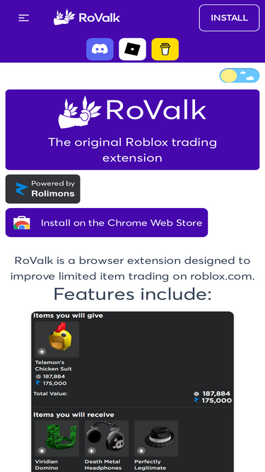 80%RoValk is a browser extension designed to improve the limited item trading experience on roblox.com.