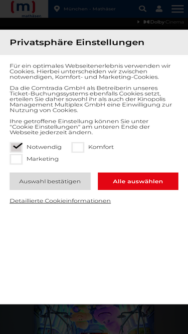 95%Mathäser Filmpalast – Mehr Kino geht nicht: Kinoprogramm, Online-Tickets und -Kartenreservierungen, Informationen zu Filmen, kostenlosen Parkmöglichkeiten, Veranstaltungen und Kinogutscheinen.