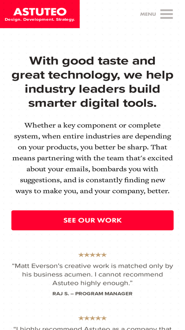 74%Astuteo is the go-to digital partner for Wisconsin's top manufacturers. Generating leads and elevating manufacturing brands globally for over 20 years.