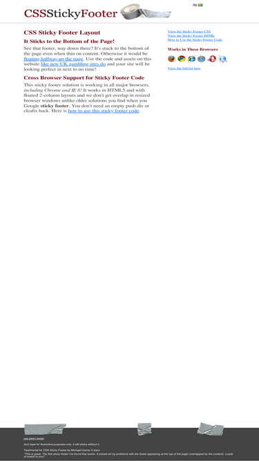 100%html css sticky footer solution that works in all modern browsers + mobile & html5. internet explorer, firefox, safari, opera, chrome.