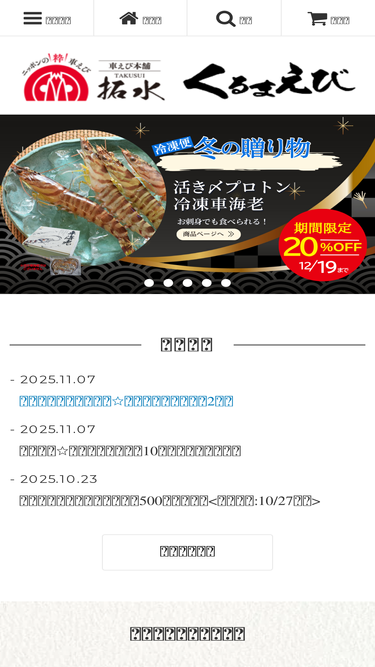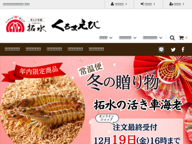 90%車えび本舗 拓水では、活き車海老をはじめ冷凍車海老、車えびみそ漬けなどを販売しています。通販ですので全国からのご注文を承ることができ、即日配達が可能で、空輸のため新鮮な車海老をお届けすることができます。お誕生日や特別な日の食卓にはもちろん、新鮮な車海老はギフトにもおすすめです。全国5県の6事業場を持つ車えび本舗 拓水だからこそできる格安価格で、高品質な車海老を味わってみませんか?産地直送の活き車海老は、ぜひ車えび本舗 拓水の通販をご利用ください。