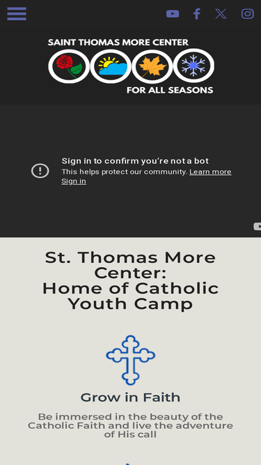 80%catholic youth camp at the st. thomas more center. a catholic summer camp experience like no other: live the adventure of his call. our summer camp is where transforming joy meets laughter and new friends! available for 3rd grade through high school. register now for the best week of your summer at catholic youth camp!