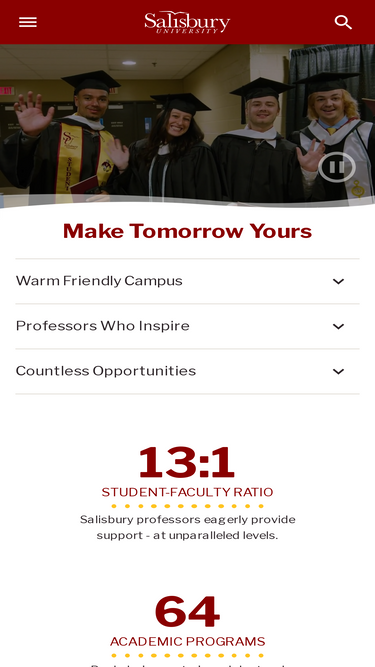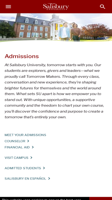 95%The Salisbury University Admissions team is here to assist future Sea Gulls. Explore way to visit our beautiful campus.