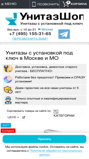 100%►покупайте унитазы с бесплатной установкой под ключ и доставкой по москве и мо недорого по цене от 4990р.✔ привезем, демонтируем старый и сразу установим новый унитаз уже сегодня.✔ никаких предоплат! оплата после осмотра!☎ звоните, для вас есть подарок