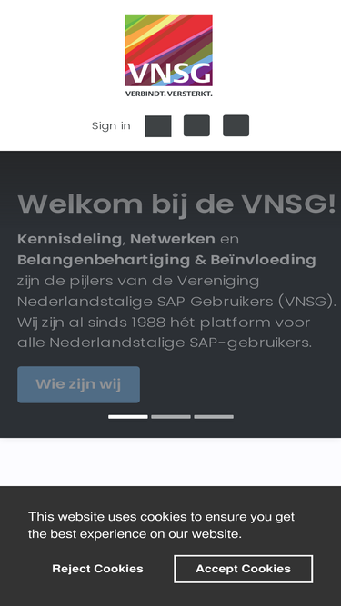 89%Vereniging Nederlandstalige SAP Gebruikers (VNSG) Voortdurend kennis delen. Toonaangevende evenementen. Breed professioneel netwerk. Invloedrijke vertegenwoordigers. We hebben het allemaal binnen onze community. VNSG Verbindt. Versterkt.