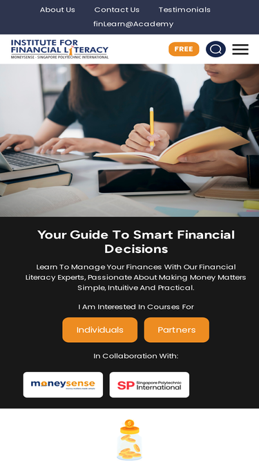 83%ABOUT US The Institute for Financial Literacy is a collaboration between MoneySense and Singapore Polytechnic International Pte Ltd. Founded in 2012, we are the outreach arm of MoneySense. We conduct free and unbiased financial education and training programmes to the public. Our core programmes cover training in financial capabilities