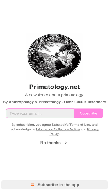 A newsletter about primatology. Click to read Primatology.net, a Substack publication with hundreds of subscribers.