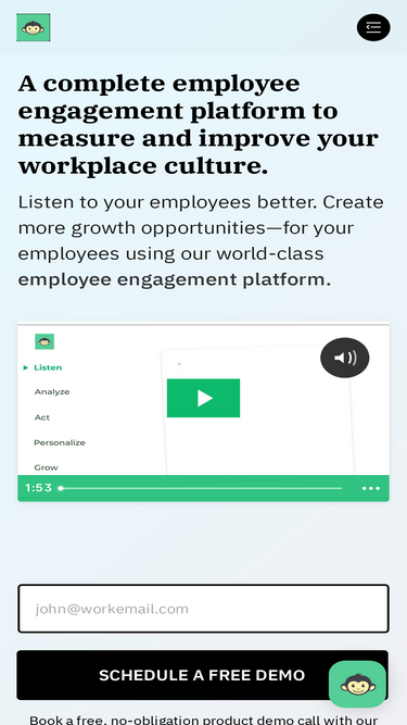 80%CultureMonkey is a secure, enterprise-ready employee engagement platform offering anonymous surveys, multilingual support, HRMS integration, and AI-driven insights to improve workplace culture.