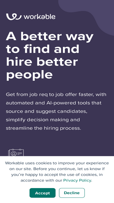69%Enhance your HR and hiring process with Workable's complete platform. Find top talent, streamline hiring, manage employees, and simplify time off and attendance seamlessly. Boost your hiring efficiency today.