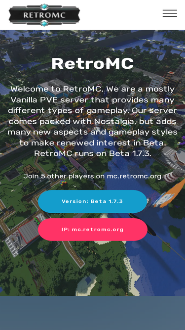 91%retromc is a minecraft beta 1.7.3 server, we are a mostly vanilla pve server that provides many different types of gameplay. our server comes packed with nostalgia, but adds many new aspects and gameplay styles to make renewed interest in beta.