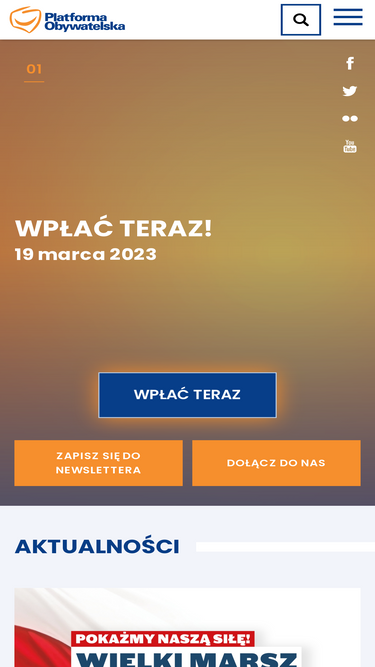 85%Od 2001 roku Platforma Obywatelska wyzwala pozytywną energię Polaków. Ta energia, to efekt ciężkiej pracy każdej Polki i każdego Polaka. To ona stała się kołem zamachowym polskiego dynamicznego rozwoju, budzącego obecnie w świecie szacunek i podziw. Nie ma twórczego społeczeństwa bez aktywnych obywateli. Platforma Obywatelska krok po kroku buduje sprawne państwo. Ten wysiłek opiera się na dwóch wartościach: służbie i solidarności. Po pierwsze: to państwo ma służyć obywatelowi, a nie obywatel państwu. Po drugie: warunkiem dobrobytu nas, żyjących tu i teraz, jak i naszych dzieci, dziś bardziej ufnie spoglądających w przyszłość, jest więcej, a nie mniej społecznej solidarności. Nie ma dobrobytu bez solidarności. Konsekwentnie wzmacniamy fundamenty naszej gospodarki. Jej stabilność już uchroniła nasz kraj przed skutkami światowego kryzysu. Teraz będziemy dalej starali się stwarzać jak najlepsze warunki dla wyzwolenia kreatywności i inteligencji Polaków tak, by przełożyły się one na innowacyjność naszej gospodarki. Innowacyjność jest bowiem największą dźwignią rozwoju naszych regionów, niezależnie od ich przeszłych, historycznych uwarunkowań. Innowacyjność pokazuje też, iż najważniejszym ogniwem w gospodarce jest człowiek – jego rozwój, edukacja i kompetencje. Nie ma innowacyjności gospodarczej bez kreatywności ludzkiej. https://www.youtube.com/watch?v=8T3sZdloaeY Naszym niezmiennym celem pozostaje poprawa jakości życia każdej polskiej rodziny, systematyczne podnoszenie komfortu życia każdej Polki i każdego Polaka. Razem, dzień po dniu, chcemy budować Polskę, która jest naszym wspólnym domem. Domem, w którym każdy znajduje swoje miejsce. Szczęśliwej Polski już czas! Dziękujemy za Wasze zaufanie. Każdy następny dzień, każdy następny miesiąc będzie coraz piękniejszy!