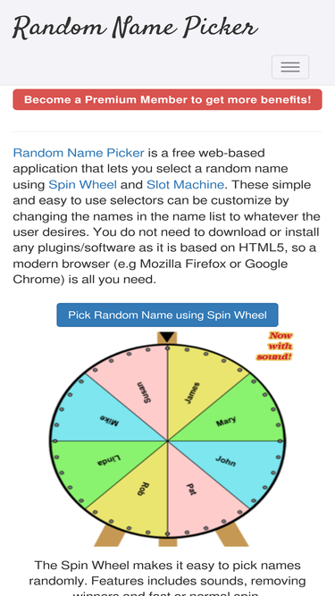 88%Pick name randomly using Spin Wheel or Slot Machine