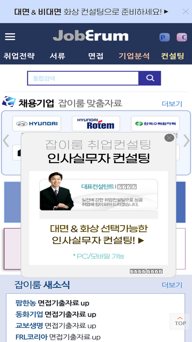 100%잡이룸은 대기업 인사담당자 출신이 함께 합니다. 취업컨설팅, 진로· 자기소개서·면접컨설팅, 기업분석 자료, 면접기출질문 답변, 찬반토론주제, 합격자소서 샘플·예시를 제공합니다.