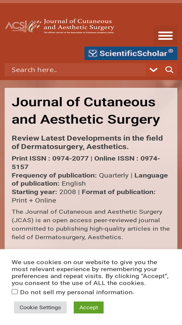 95%Editorial office Editor-In-Chief Professor (Dr.) Sandeep Arora Senior Consultant Dermatologist Mehektagul Dermaclinic New Delhi, India Email: editorinchiefjcas@gmail.com Publisher For any suggestions, complaints and compliments please contact us through the form below.