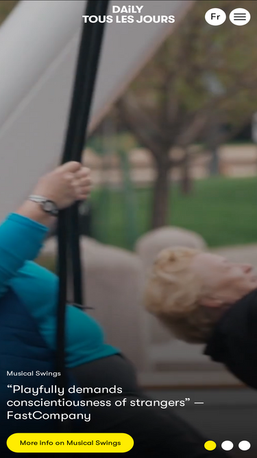 89%daily tous les jours creates collective experiences for public spaces. since 2010, the art and design studio based in montreal invites humans to play a critical role in the transformation of their environment.
